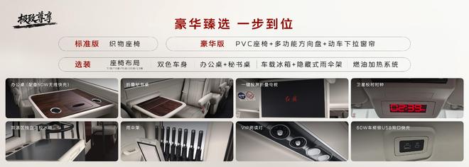 在舒适与便捷配置上,红旗金葵花国悦营运版搭载一键投屏折叠电视、60W车规级USB双口快充、卫星信号毫秒级自动校时时钟等实用配置;还可按需选装集成50W无线快充的办公桌、车载冰箱、雨伞架等原厂个性化配置,全方位满足不同出行场景的需求。